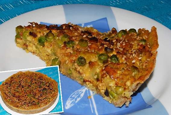 Misturar creme de aveia no preparado da frigideira, deitar na massa quando cozida e levar de novo ao forno. Deitar sementes de sésamo por cima. (opcional)