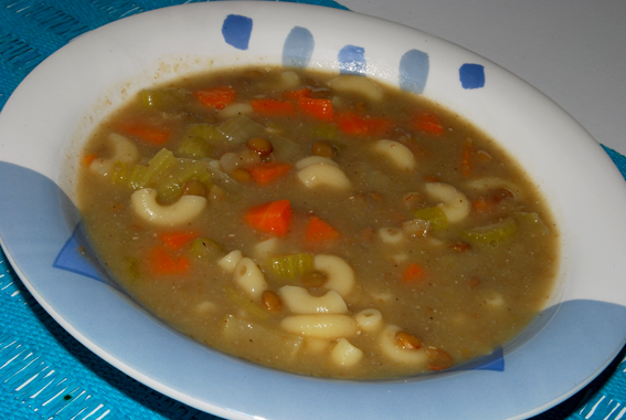 Andava com ideia na sopa de lentilhas mas como não encontrei receita nenhuma que me prendesse a atenção, resolvi inventar com o que tinha em casa. O Aipo tem um sabor forte que se destaca, dá um sabor diferente, sem dúvida. Desafio superado.